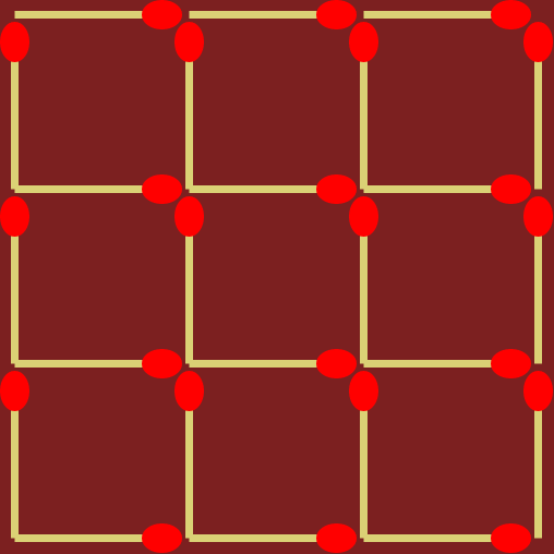 En partant de cette figure, comment obtenir trois carrés en enlevant huit allumettes ?