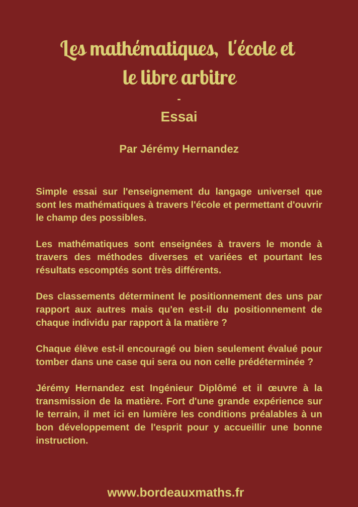 Simple essai sur l’enseignement du langage universel que sont les mathématiques à travers l’école et permettant d’ouvrir le champ des possibles.